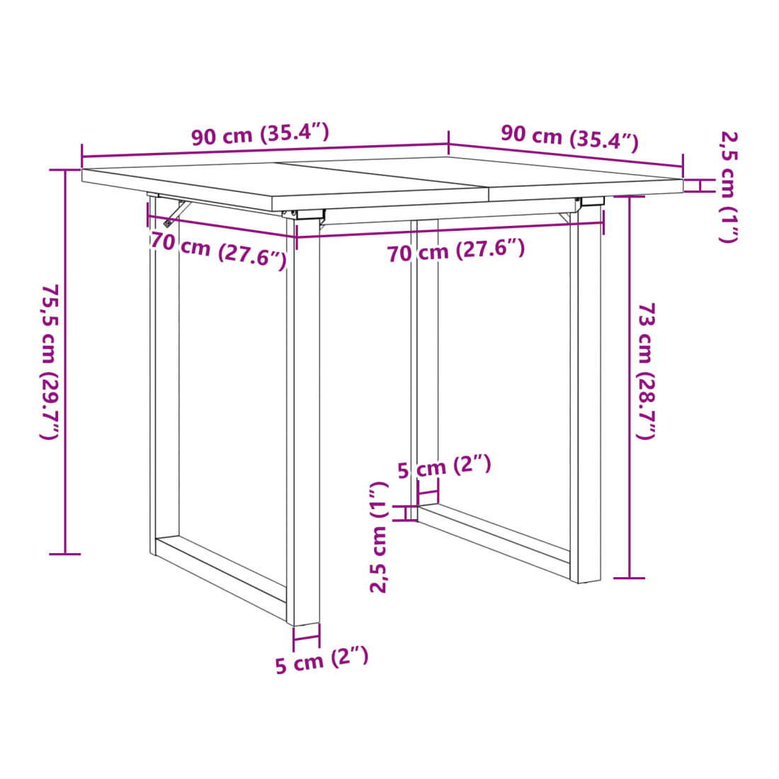Table à manger Style Industriel cadre en O en bois de pin massif & fonte 90 x 90 x 75.5 cm