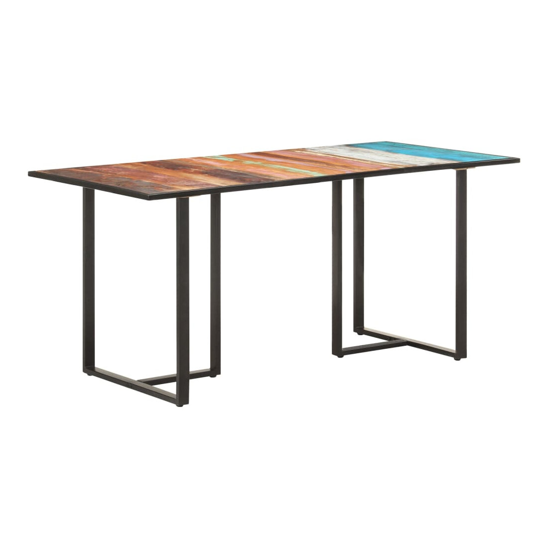 Craquez pour cette table de salle à manger en bois de récupération massif 160 x 80 x 76 cm qui, grâce à son design, s’harmonise à la fois avec des décors industriels et des ambiances bohèmes.