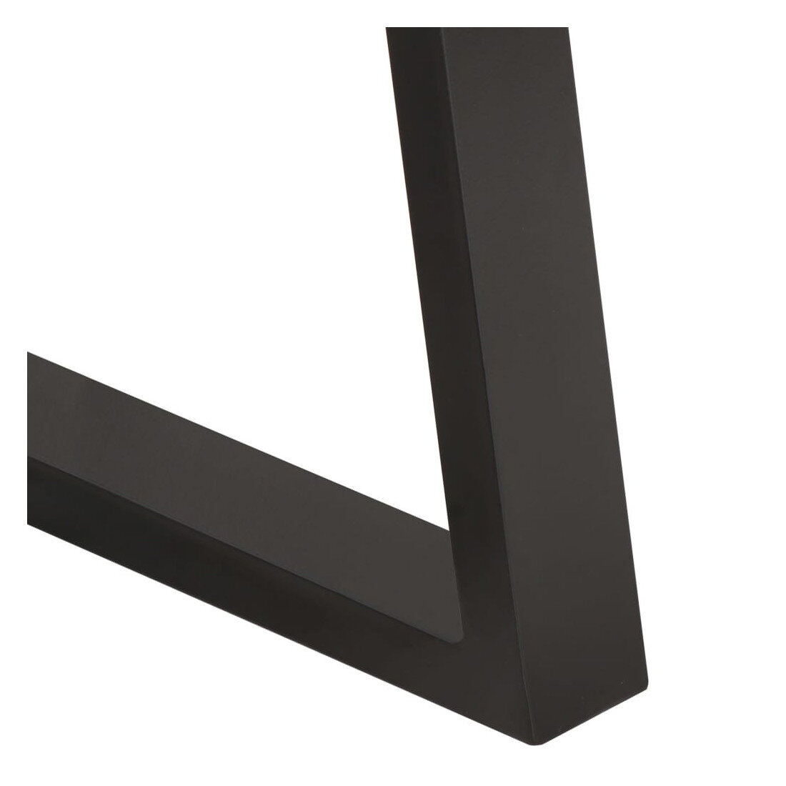Les pieds en fer en forme de U, recouverts d’un revêtement en poudre, renforcent l’allure industrielle de la table tout en lui offrant une grande stabilité. Ce contraste entre le bois brut et le métal robuste souligne le caractère moderne et intemporel du meuble.