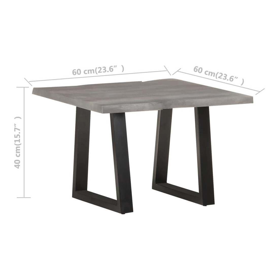 - Matériau : bois d'acacia massif avec avec finition grise, fer enduit de poudre