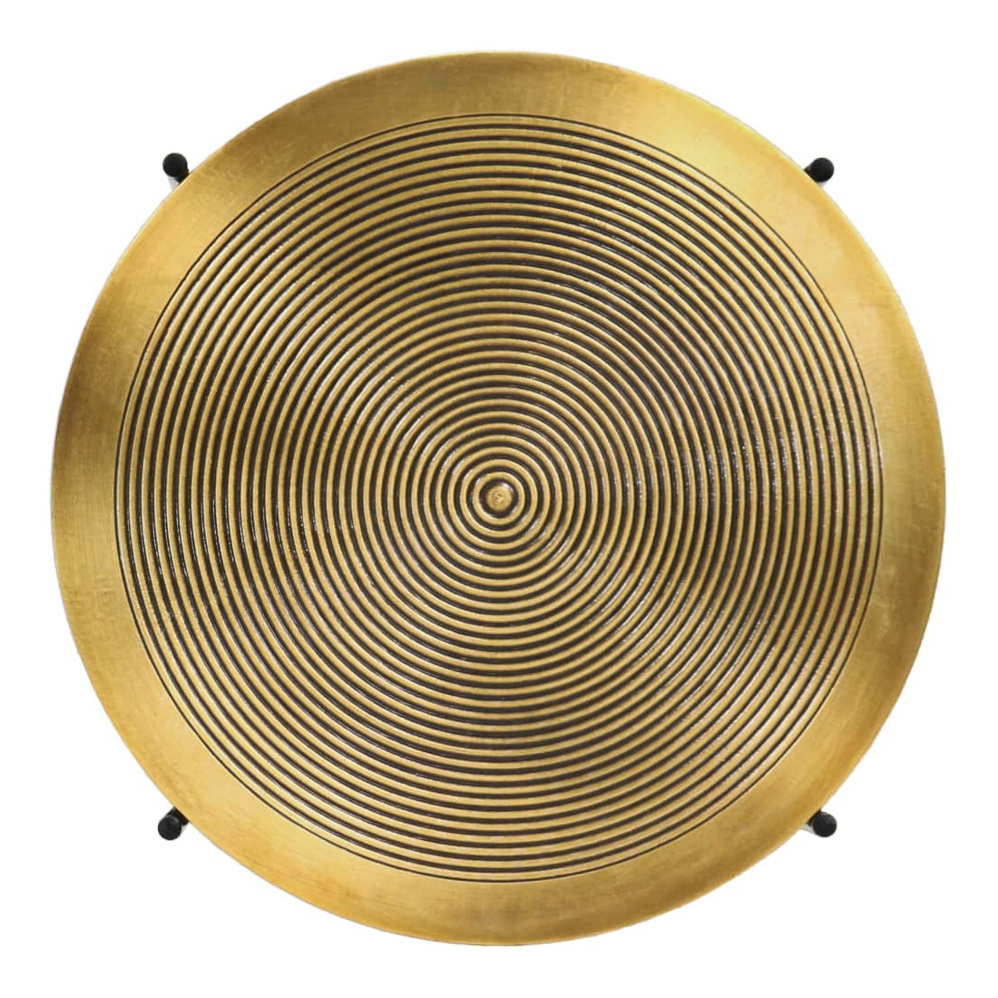 Les pieds en acier noir confèrent une stabilité optimale tout en renforçant le contraste avec le plateau doré. Cette combinaison de matériaux s’inscrit parfaitement dans le mouvement Art Déco, qui valorise les associations audacieuses entre le métal et les finitions précieuses. Ces pieds fins et élancés rappellent les structures architecturales stylisées de cette époque, où la symétrie et l’harmonie étaient au cœur du design.