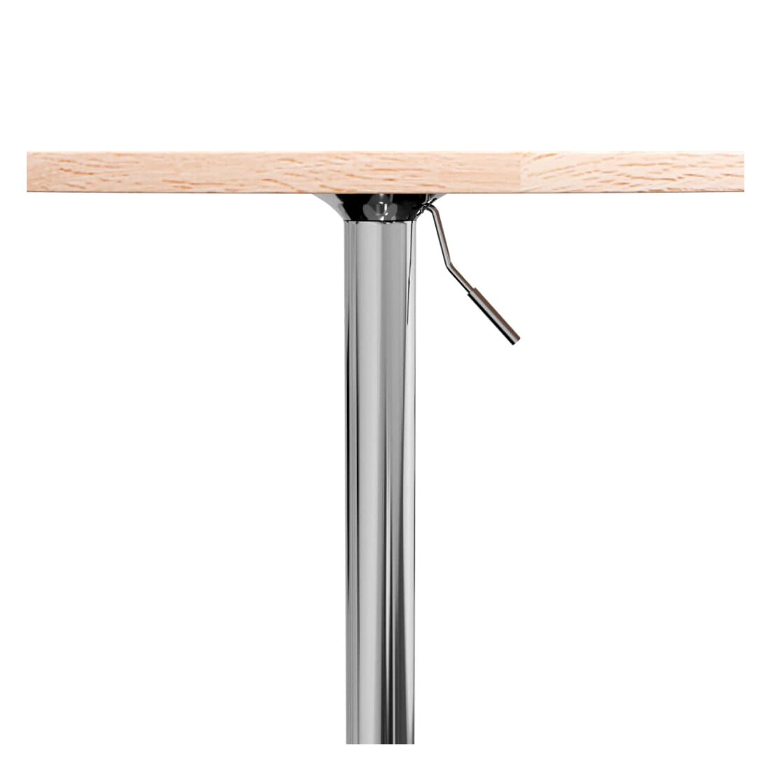 Ajoutez une touche de charme vintage à votre intérieur avec cette table de bar en en bois de chêne massif. Ses dimensions généreuses de 60 x 89.5 cm offrent suffisamment d'espace pour créer une ambiance conviviale. La qualité des matériaux, avec sa finition en naturel, assure non seulement un look esthétique mais aussi une durabilité à long terme. Cette table de bar à la mode, au design élégant et intemporel, s'adapte parfaitement à votre décoration intérieure. Matériau durable : la base en acier chromé offre une grande robustesse et apporte une stabilité supplémentaire. Le dessus de table est en bois de chêne massif, un matériau naturel d'une grande beauté. Le bois de chêne a une couleur marron moyen et un grain dense, ce qui contribue à son aspect unique.Fonction réglable : grâce au mécanisme de levage à gaz, la base de table de bar peut être réglée en hauteur et constitue un supplément parfait à tout bar fonctionnel ou espace de salle à manger.Surface facile à nettoyer : le dessus de table lisse est facile à nettoyer avec un chiffon humide.Installation facile : avec le design cylindrique de la base, cette base de table est facile et rapide à installer sur le dessus de table.