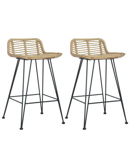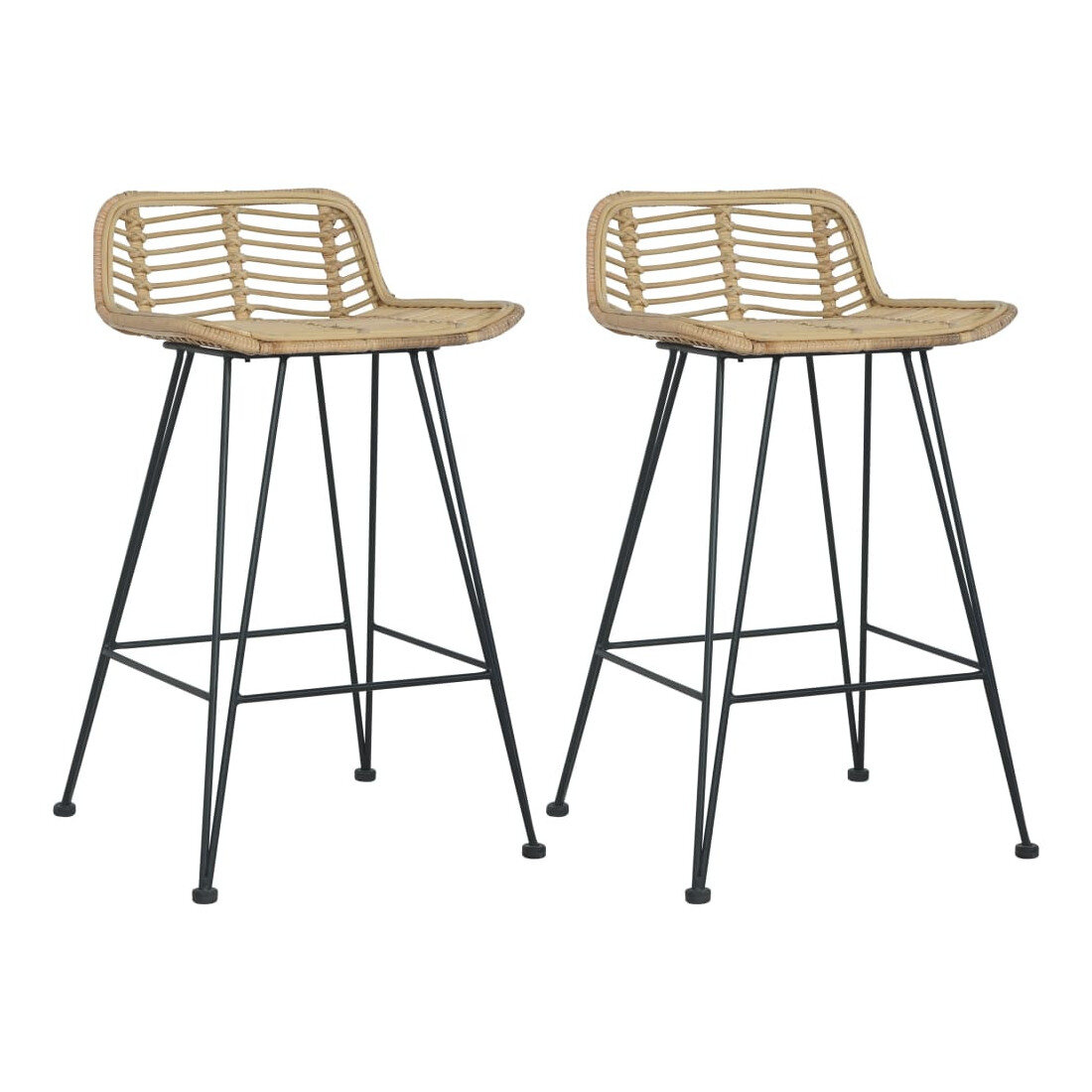 Chaise de bar Bohème / Nature en lot de 2 en rotin naturel Brun