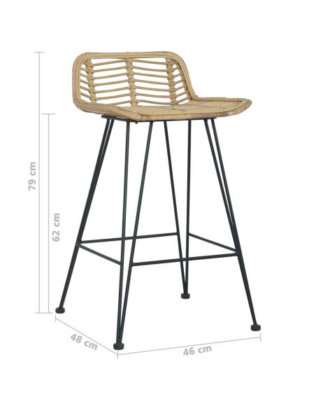 Ajoutez une touche de charme naturel à votre décoration intérieure avec nos chaises de bar en rotin naturel, conçues pour être à la fois élégantes et fonctionnelles. Parfaites pour sublimer votre cuisine, votre salon ou tout autre espace de vie, ces chaises deviennent rapidement le point focal de votre pièce. Le siège et le dossier en rotin, à la fois confortables et faciles à nettoyer, garantissent une expérience d'assise agréable et une facilité d'entretien avec un simple chiffon humide. Les pieds en métal solides apportent stabilité et durabilité, complétant parfaitement l’esthétique rustique et bohème de ces chaises de comptoir. Leur design polyvalent permet de les intégrer aisément à tout type de décoration, du moderne au traditionnel. Si vous cherchez à combiner confort, style et praticité, ces chaises en rotin naturel sont la solution idéale pour enrichir votre espace de vie.