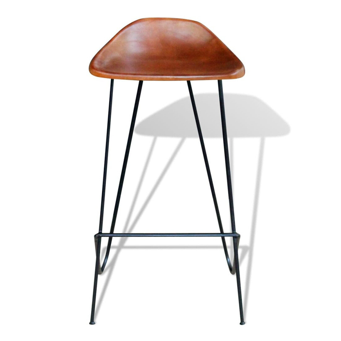 Tabourets de bar Bohème / Nature en lot de 2 en cuir véritable & Bois Brun 75 cm