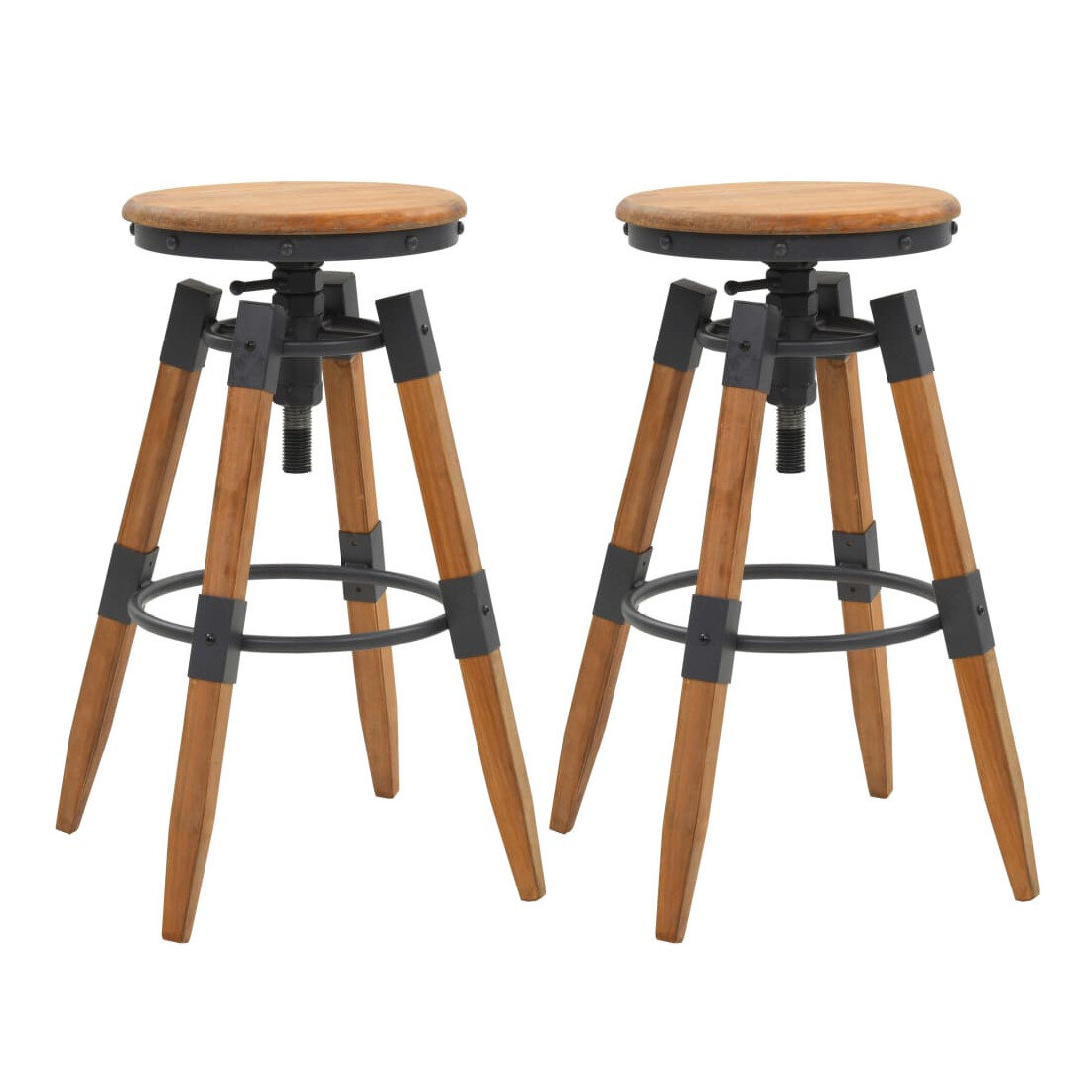 Tabourets de bar industriel en lot de 2 en bois de sapin Brun