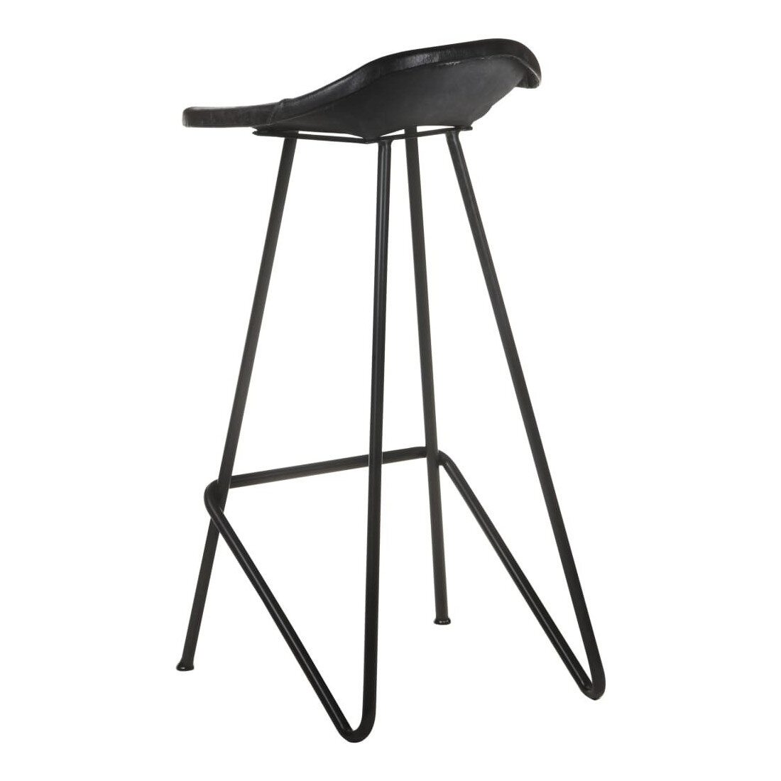 Tabourets de bar industriel en lot de 4 en cuir véritable Noir