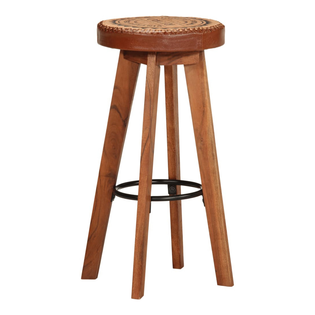 Chaise de bar Rétro / Vintage en lot de 2 en cuir véritable et bois d'acacia Brun