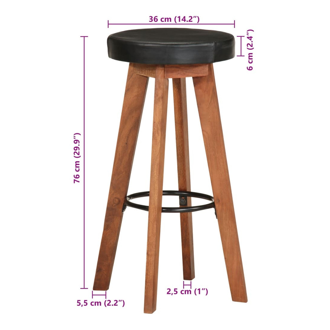 Ces tabourets de bar dégagent un charme rétro intemporel qui apporte une touche sophistiquée à tout type d’intérieur, que ce soit une maison, un bar ou un restaurant. Le bois d'acacia massif, aux grains fins et à la texture dense, confère une allure naturelle et robuste à chaque tabouret, garantissant une durabilité optimale. Combinés à un cuir véritable doux et résistant, ces tabourets offrent une assise confortable et durable, tout en assurant un style indémodable.